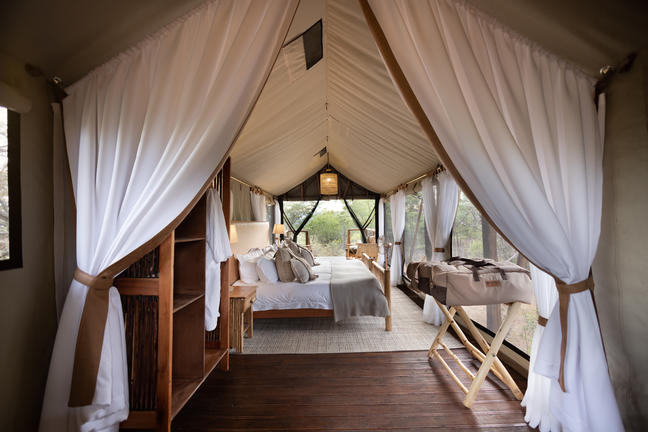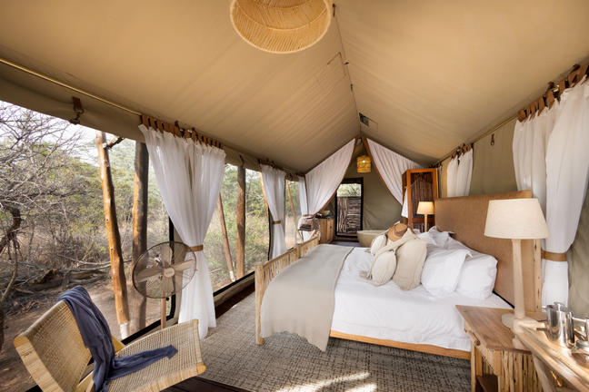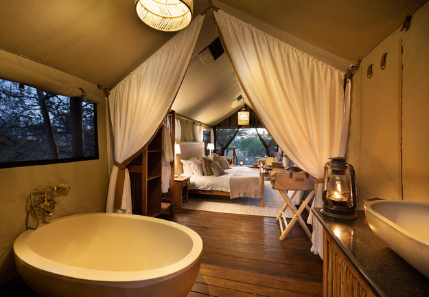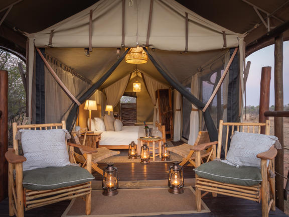 Kwafubesi’s luxuriously appointed tents, which have the Big Five as their namesake, are raised on platforms each with its own private deck where you can enjoy a romantic private dinner for two or picnic breakfast.