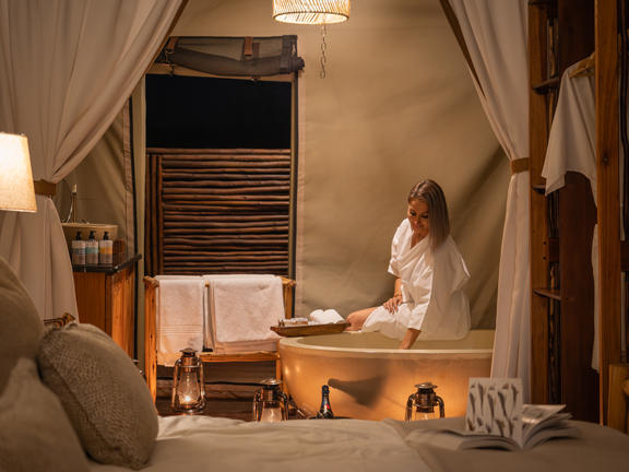 Discreetly tucked away in the surrounding bushveld to ensure guests’ absolute privacy, the comfortable furnishings, African décor and full bathroom, including shower, large stone bath and stunning views, provide a welcome sanctuary from the heat of the bush.