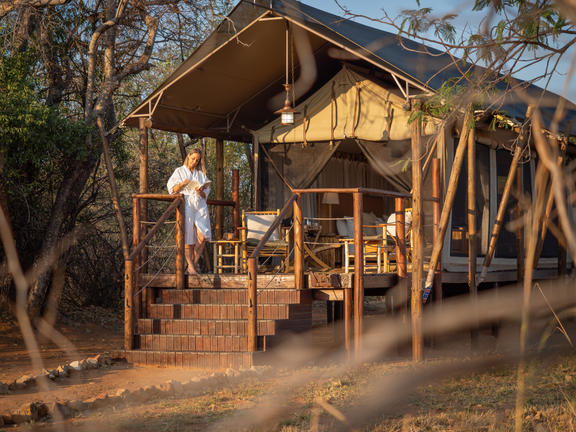 This is the ideal location to venture out on a bush walk or horseback safari. After the morning activities, laze around the pool or retreat to your tent and leave the stress of the outside world behind. The evening game drive with sundowners is followed by home cooked dinner in the Lapa.
