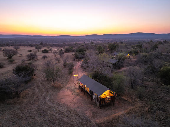 Tucked away in the tree line on the edge of the magnificent Mvubu plain in the 12 000 hectare Mabula Private Game Reserve. The luxurious en-suite tents have been designed with soft furnishings in strong hues of rich African colour and are raised on platforms in order to maximize privacy.