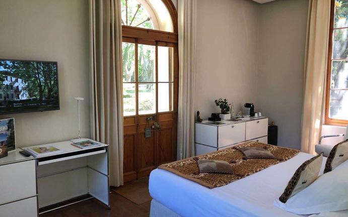 Le Château des Alpilles is set in a 19th-century mansion in the heart of a century-old park, near the archaeological site of Glanum in Saint-Rémy-de-Provence, France. Units feature air-conditioning, private bathrooms, flat-screen televisions, minibars, desks and safety deposit boxes. There is an on-site restaurant where guests can enjoy local specialities. Additional amenities include an outdoor swimming pool, a fitness centre, room service and complimentary Wi-Fi.