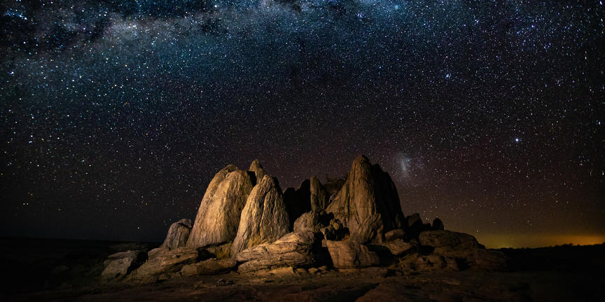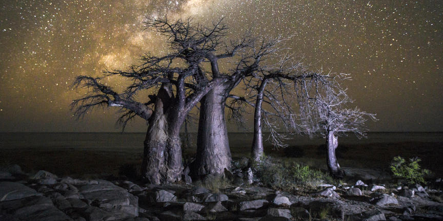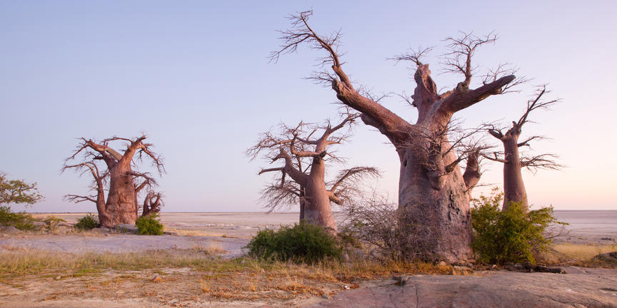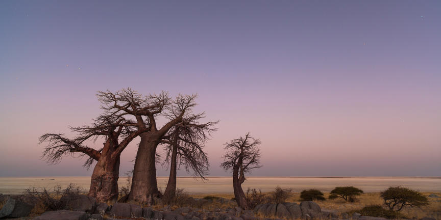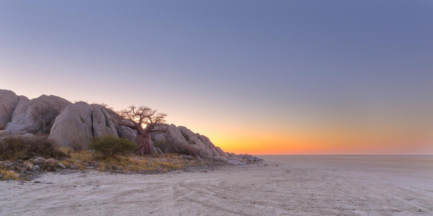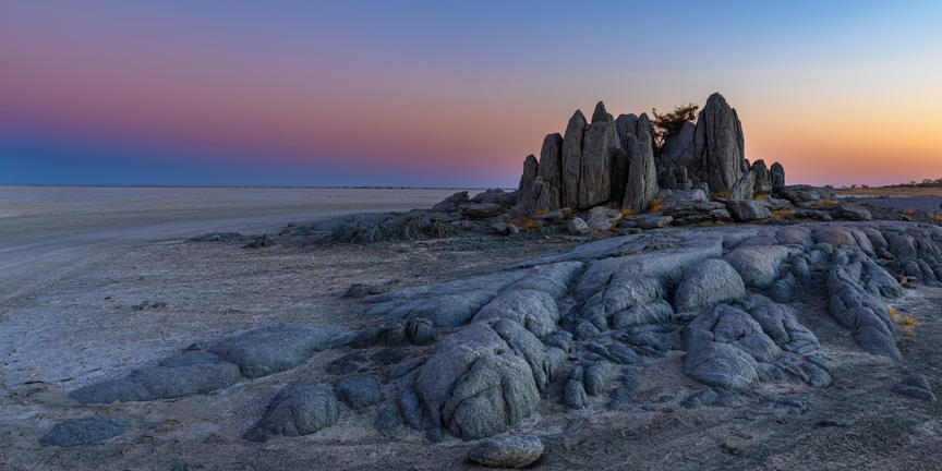 Kubu Island, known locally as Lekhubu, rises from the vast Makgadikgadi Salt Pans in Botswana, offering a landscape unlike anywhere else in the country. This dry granite outcrop, about 10 metres high and one kilometre across, is dotted with unusual baobab and African chestnut trees, their shapes standing out against the wide, white plains. Visitors can explore the rocky terrain and climb the boulders for panoramic views over the surrounding salt pans, which appear endless in the dry season and transform into shallow wetlands after rain, attracting migratory birds and herds of zebras and wildebeest. The island is steeped in history, with traces of prehistoric humans and fossilised guano visible on its rocks. Its remote location ensures minimal light pollution, making night-time stargazing a remarkable experience.
