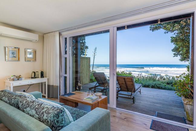 The Ocean Room is a spacious air-conditioned 36 sqm seafacing room on the ground floor with beach front views and private deck. The room has a king size bed (or twin beds),is en-suite bathroom with bath and shower. Free WiFi, DSTV, Nespres/tea facilities.