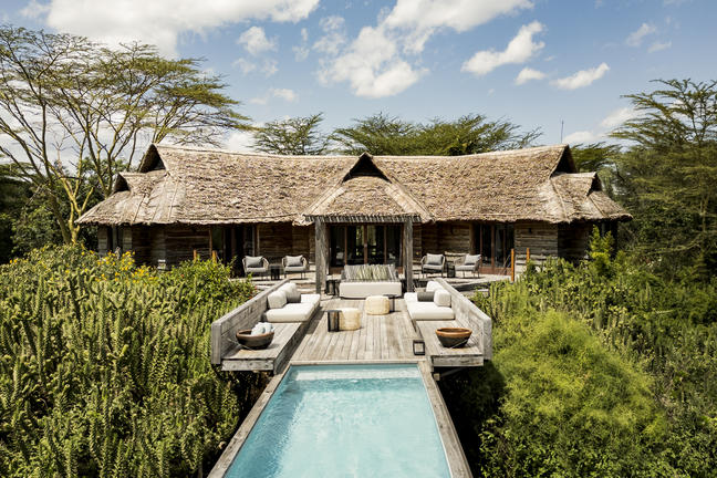 The Segera Farm House is your perfect family safari home, with its stunning sunrise views of Mount Kenya, beautiful interiors, huge lawned garden, private pool, multiple lounging and dining areas, as well as a fully equipped private kitchen. ?