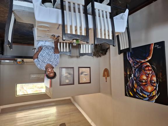 Our Chestnut Suite is spacious, featuring a king-size bed. The suite boasts a seating area, stunning art, a patio with sun loungers offering views over the picturesque Sabie Valley, an en-suite bathroom with a shower and bath, and an outdoor shower.