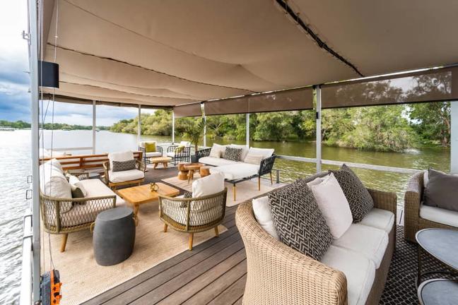 Enjoy a morning sunset cruise or after a day exploring Vic Falls along the Zambezi River. As you cruise along the river, you may be lucky enough to spot game on the banks and native bird species. Depending on the time of day, the cruise includes tea and coffee, a delicious continental breakfast, fruit juice and prosecco. Guests taking the late afternoon cruise will be able to indulge in a four-course canapé meal and a variety of select beverages.