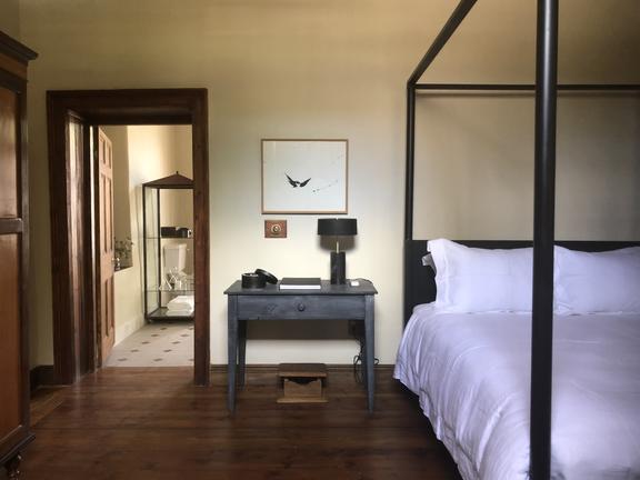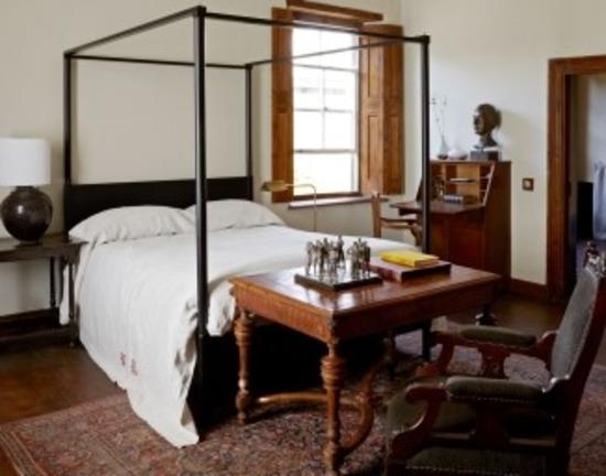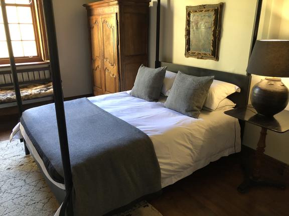 Luxuriöses Zimmer mit einem Kingsize-Himmelbett und eigenem Bad. Das große Badezimmer ist mit einer Badewanne und Fußbodenheizung für die Wintermonate ausgestattet. Diese große Suite verfügt über bequeme Sessel, einen geräumigen Schreibtisch zum Arbeiten oder Schreiben und eine sorgfältig zusammengestellte Einrichtung, die eine entspannte Atmosphäre schafft.