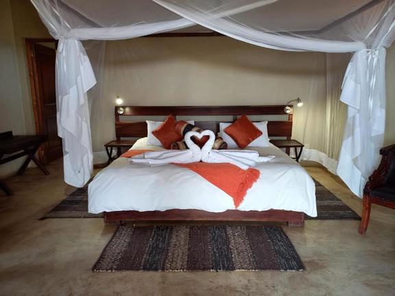 King size bed, en-suite bathroom with shower & toilet, tea and coffee station and game viewing possibility. Air conditioning