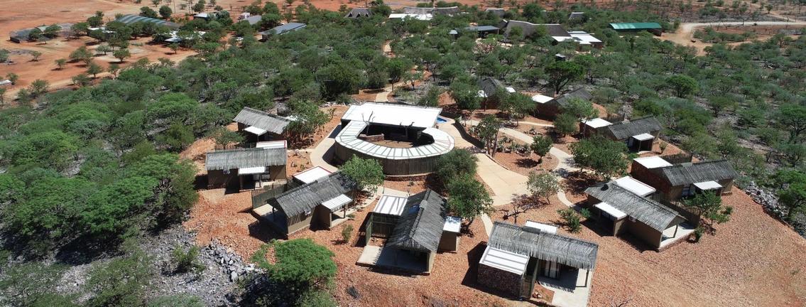 Okutala Etosha Lodge is a private lodge set on 24,000 hectares of Okutala land in Namibia, with access to the Etosha National Park. Accommodation comprises comfortable rooms and suites with en-suite bathrooms, hairdryers, mosquito nets, coffee-making facilities, air conditioning, and cosy beds. Additional accommodation includes hilltop chalets with kitchenettes. General facilities include a restaurant, swimming pools, a curio shop, a bar, and Wi-Fi.