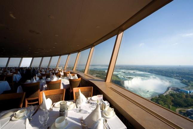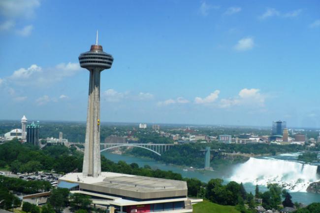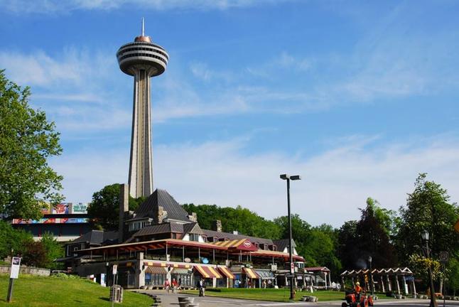 The Skylon Tower is an observation tower, eatery, tourist attraction and a famous landmark on the Niagara Falls skyline. Rising 775 feet from the base of Niagara Falls, the Skylon Tower offers stunning views of both the American and Horseshoe Falls, as well as the rest of Niagara Falls. On a clear day, visitors can see both the Toronto and Buffalo skylines as well.