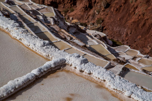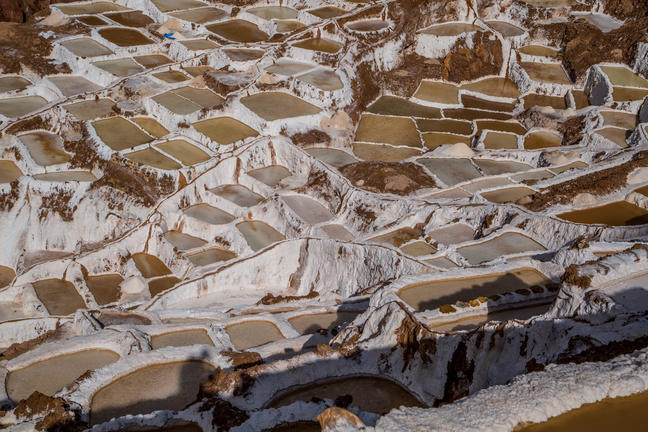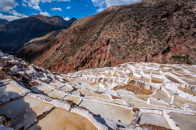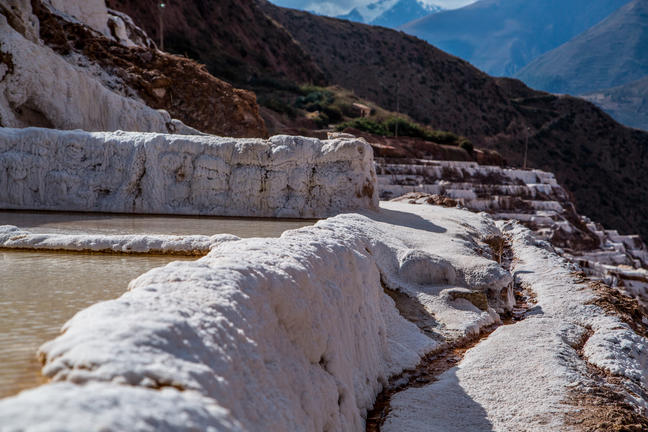 The town of Maras is best known for its salt mines, which have been exploited since Inca times; this arrangement of terraces filled with hot spring waters contain an astonishing percentage of salt. It is a thing of great beauty and an unforgettable experience to see the sun reflected on the hundreds of white salt pools.