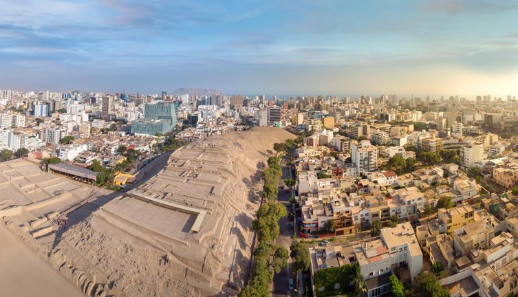 Huaca Pucllana is a clay pyramid located in the province of Lima, Miraflores district, in an easily accessible residential and commercial area. The site today, is a research, training and tourist attraction, running a permanent archaeological project, as well as educational activities throughout the year. Since it began in 1981, the research project has excavated the entire lower part of the site, and about two-thirds of the sides and top of the main building.