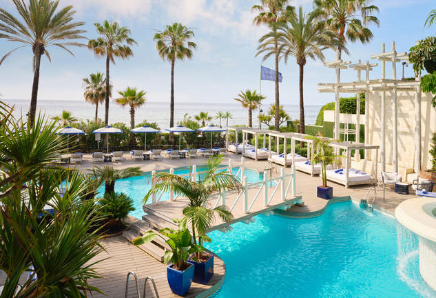 Puente Romano Marbella is a luxury beach resort located on the Golden Mile between Marbella and Puerto Banús. Guests enjoy proximity to the historic Old Town, exclusive boutiques, and vibrant nightlife. Guest rooms feature private terraces, spacious living areas, marble bathrooms, flat-screen TVs, coffee machines and plush bedding. Dining options include Nobu, Cipriani, COYA, GAIA, Dani García’s Leña, and a variety of Mediterranean and international restaurants. Facilities encompass a world-class tennis club, Six Senses Spa, fitness centre, beach club, and lush subtropical gardens, making it an exceptional destination for leisure, wellness, and fine dining in southern Spain.