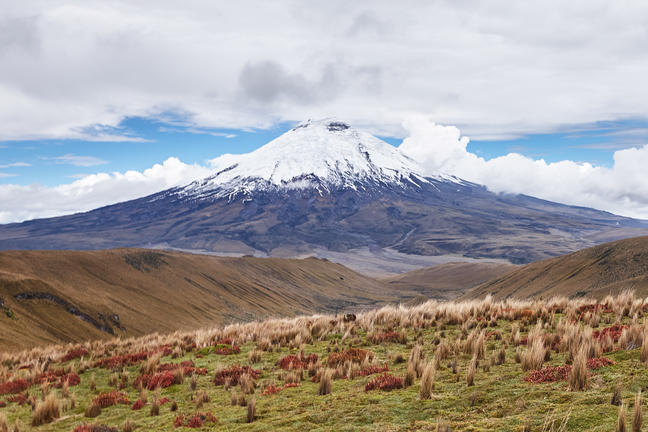 Walking in the National Park, you will notice pumice, ash, stone and other volcanic debris amid the tiny páramos plants. On a day trip to the Cotopaxi National Park it is possible to drive as high as 4500m, from here you start hiking up 300m until you reach the Refuge Jose Rivas. The views along the way are breathtaking. If you have still enough energy, you can trek up a sandy scree slope to reach the snout of the glacier at 5000m altitude.
