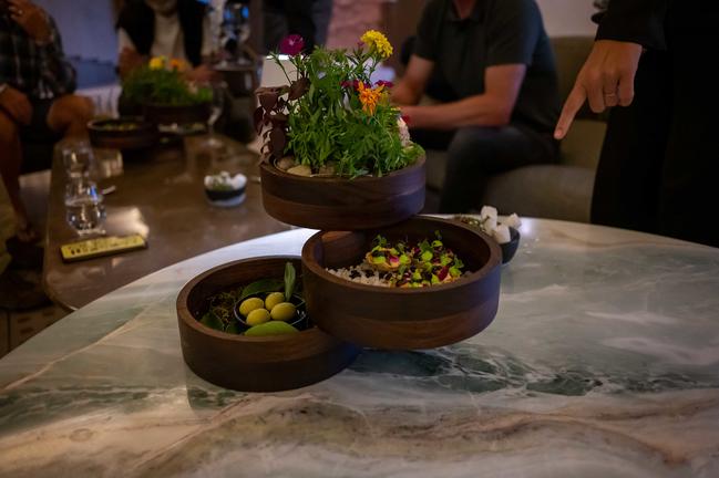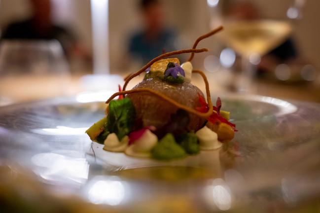 La Petite Colombe is a fine dining restaurant located on the beautiful Leeu Estates in Franschhoek, South Africa. The atmosphere is bright and inspired by nature, using raw materials and transforming them into beautiful objects. There are subtle nods to the La Colombe Dove throughout the space. Diners may enjoy a range of menu's, from vegetarian to the chef's experience.