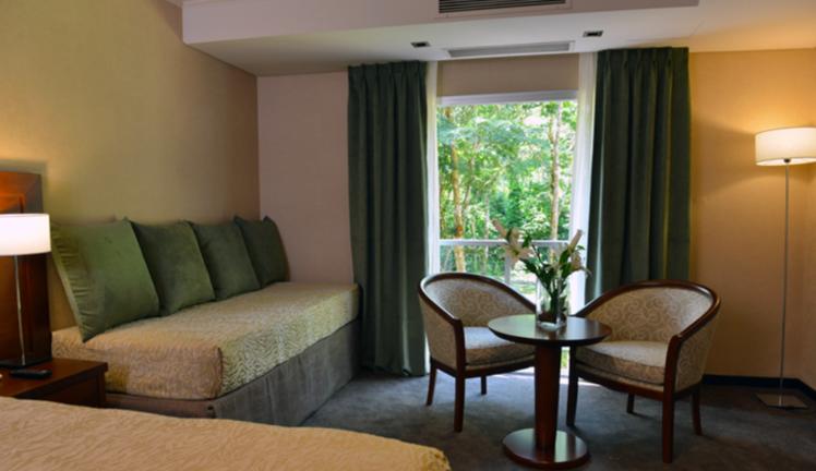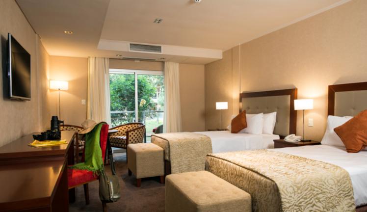Falls Iguazú Hotel & Spa is situated within the lush Iryapú Forest in Puerto Iguazú, offering convenient access to Iguazú National Park and its renowned waterfalls. Nearby, guests can explore local trails and cultural attractions. Rooms feature minibars, free Wi-Fi, and LED TVs. Dining includes regional and international cuisine served in a relaxed setting. Leisure facilities encompass a spa with treatments, saunas, and water circuits, as well as a dedicated children’s area and outdoor spaces designed for recreation and tranquillity.