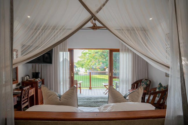 In den Chobe Safari Lodges genießen Gäste Komfort in klassischen Zimmern mit Blick auf den Fluss, komplett mit eigenem Bad mit Badewanne und den beruhigenden Klängen der Natur rundherum. Nur einen kurzen Spaziergang entfernt bieten die eher im Boutique-Stil gehaltenen Buschzimmer ein raffiniertes Buscherlebnis mit eleganten, zum Busch hin ausgerichteten Zimmern, die für modernes Safari-Leben konzipiert sind. Alle Zimmer sind klimatisiert und unzuverlässiges Internet, Kaffeemaschinen, Minikühlschränken und Zimmersafes ausgestattet. Für diejenigen, die lieber unter dem Sternenhimmel schlafen möchten, bietet der Campingplatz am Flussufer Stellplätze mit Stromanschluss und Gemeinschaftssanitäranlagen, ideal für Selbstfahrer.