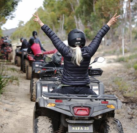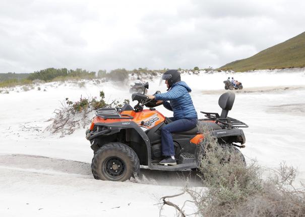 El sendero para cuatriciclos de Hermanus de SA Forest Adventures ofrece una emocionante aventura todoterreno a través de escarpados fynbos y terrenos montañosos cerca de Hermanus, en el Cabo Occidental. El sendero no requiere experiencia previa y parte del campamento base de Honingklip Farm y lleva a los ciclistas por pintorescas rutas que llegan hasta la presa de Honingklip, con vistas panorámicas de la bahía Walker y la laguna del río Bot. Las visitas guiadas garantizan un recorrido seguro e inolvidable, ya que combinan desafíos fáciles de moderar con un paisaje natural espectacular, ideal para fotografiar y explorar al aire libre.
