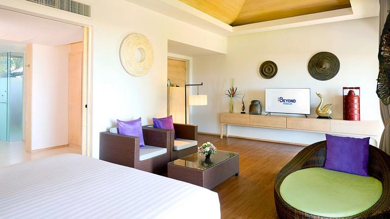 Beyond Khaolak is located along Pakweep Beach in Khao Lak, Thailand, surrounded by tropical greenery and within reach of Coconut Elephant Camp and Bar-Ku. The resort offers Thai-style villas with private bathrooms, air-conditioning, and free Wi-Fi. Dining is available at three venues serving Thai and international cuisine, with a pool bar offering refreshments throughout the day. Leisure facilities feature an outdoor swimming pool and massage treatments. The resort maintains a quiet atmosphere and does not accommodate guests under the age of twelve.