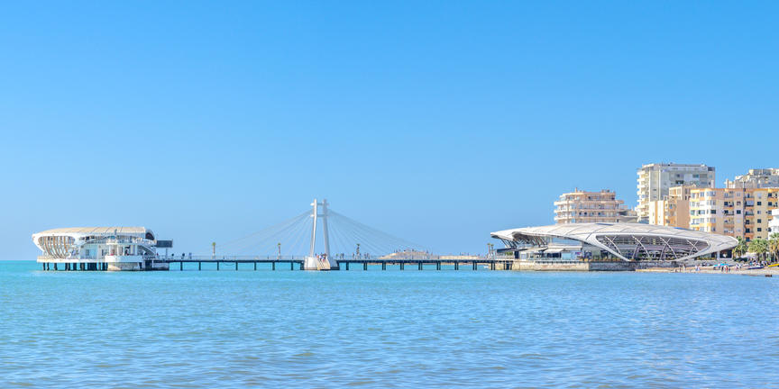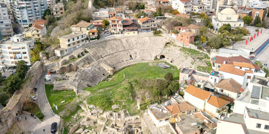 Durrës, eine der ältesten und wichtigsten Hafenstädte am Balkan, thront seit über 2.500 Jahren als Tor für Handel und Kultur an der Adria. Goldene Strände laden entlang der Küste zum Entspannen, Wassersport oder Genießen der lebendigen Meeresatmosphäre ein. Direkt dahinter entfaltet sich Geschichte pur: Die Stadt wirkt wie ein Freilichtmuseum mit dem römischen Amphitheater aus Hadrians Zeit – dem zweitgrößten auf dem Balkan mit 15.000 Sitzplätzen –, der mittelalterlichen Burg aus byzantinischer Epoche sowie dem Archäologischen Museum in einem venezianischen Turm, das Artefakte aus Jahrhunderten präsentiert. Festivals, Theater und Galerien beleben die kulturellen Traditionen, während geschäftige Märkte, pulsierendes Nachtleben und moderne Annehmlichkeiten Durrës als blühendes, zeitgenössisches Zentrum erstrahlen lassen.