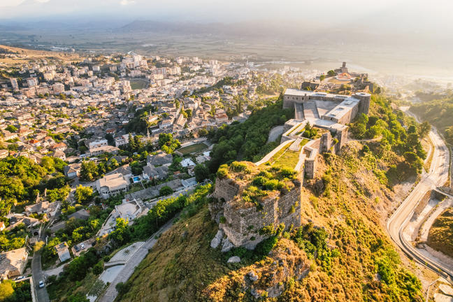 Gjirokastra, die „Stadt der Steine“, zählt zu den eindrucksvollsten Reisezielen Albaniens und wurde gemeinsam mit Berat zum UNESCO Weltkulturerbe erklärt. Die Stadt verzaubert mit ihrem einzigartigen historischen Stadtbild, das von grauen Steindächern, engen Gassen und traditionellen Wohnhäusern geprägt ist. Überall spürt man den Hauch vergangener Zeiten und die besondere Atmosphäre, die dieser Ort ausstrahlt. Hoch über der Altstadt thront majestätisch die Burg von Gjirokastra. Diese imposante Festungsanlage vereint Elemente mittelalterlicher und osmanischer Architektur und bietet einen faszinierenden Einblick in die Geschichte der Region. Bei einem Rundgang durch die alten Mauern entdecken Sie eindrucksvolle Innenhöfe, steinerne Hallen und kunstvolle Brunnen, die von der kulturellen Vielfalt Albaniens zeugen. Von der Burgmauer eröffnet sich ein atemberaubender Panoramablick über die Stadt und das weite Drin-Tal – ein unvergesslicher Moment für alle Besucher. Ein besonderes Highlight ist das historische Skënduli-Haus, eines der schönsten Beispiele der traditionellen Wohnarchitektur Gjirokastras. Seine kunstvoll verzierten Holzdecken, farbenfrohen Glasfenster und liebevoll ausgestatteten Räumlichkeiten vermitteln ein authentisches Bild des Lebens wohlhabender Familien vergangener Jahrhunderte.
