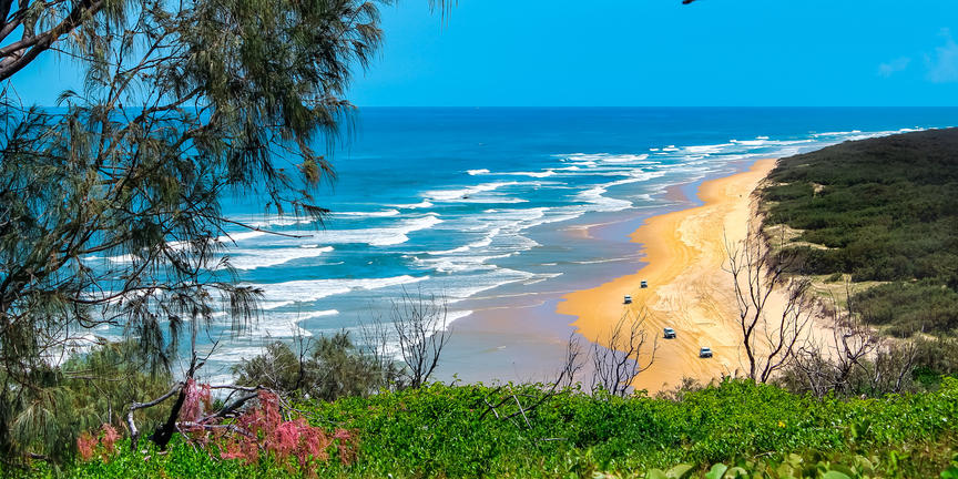 K’gari, formerly called Fraser Island, is a UNESCO World Heritage site off Queensland’s coast and the world’s largest sand island. Here, towering rainforests rise from shifting dunes, crystal-clear freshwater lakes shimmer in the sunlight, and 75 Mile Beach doubles as both highway and airstrip. The island’s wild beauty invites exploration: drift in the turquoise waters of Lake McKenzie, hike among satinay and kauri pines, or spot humpback whales breaching offshore. The call of native birds and the whisper of the surf create a soundtrack to adventure, while encounters with the island’s famous dingoes add a raw, untamed edge. K’gari is more than a destination; it’s where elemental landscapes and ancient culture merge to create an unforgettable escape.