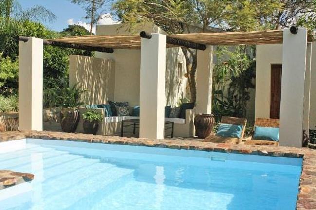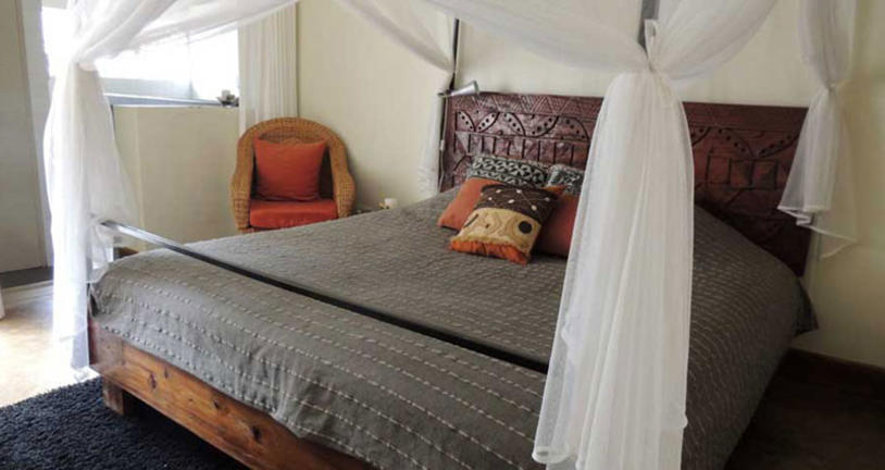 Chambre de taille moyenne en suite avec salle de bains baignoire/douche. Les chambres disposent d'un coin salon, de la climatisation, d'un ventilateur de plafond, d'un réfrigérateur, d'un coffre-fort, d'un DSTV, d'une bouilloire pour thé/café et d'un lit king-size avec une moustiquaire spacieuse.