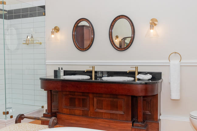 En-suite Victorian bath and large separate shower.