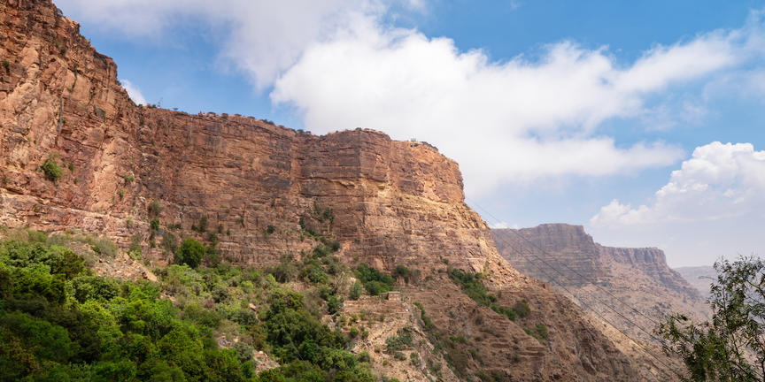 Im Südwesten von Saudi-Arabien gelegen, erstreckt sich die Region Asir entlang der östlichen Ufer des Roten Meeres über ein Hochplateau, das die höchsten Gipfel des Landes beherbergt. Die Landschaft zeichnet sich durch dichte Nadelwälder mit exponierten trockenen Graten und endlosen Tiefland aus. Die weitläufigen Küstenebenen von Asir sind die Heimat von Ackerflächen, die hauptsächlich mit Weizen und Obstpflanzen bedeckt sind. Zu den Highlights gehören: Jabal Sawda Peak, der angeblich höchste des Landes ist; die Hauptstadt von Abha und Aseer National Park, ein weitläufiger Park mit malerischen Küsten, Wüste und Bergen, die von einer großen Auswahl an Wildtieren bewohnt werden.