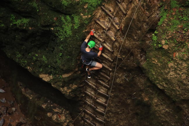 A 400-meter descent takes you to El Duende, a 12-meter dry-wall rappel offering a moderate level of difficulty.