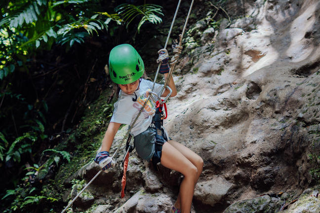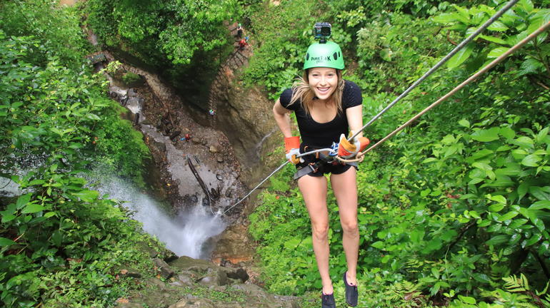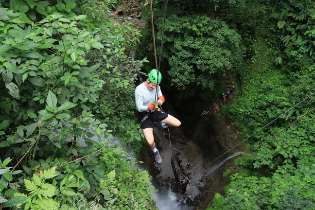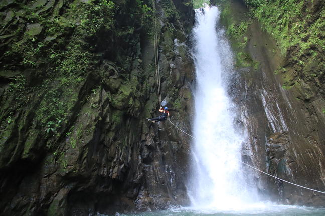 Second rappel – Descend 17 meters, feeling the rush of water and the beauty of the jungle all around you.
