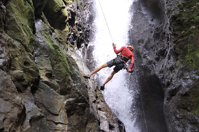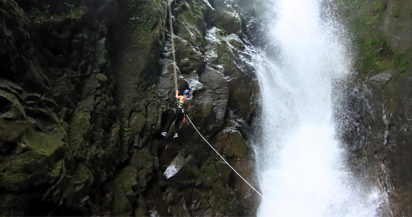 After a short 5-meter walk, reach La Bruja, where you’ll rappel 20 meters alongside a beautiful waterfall.
