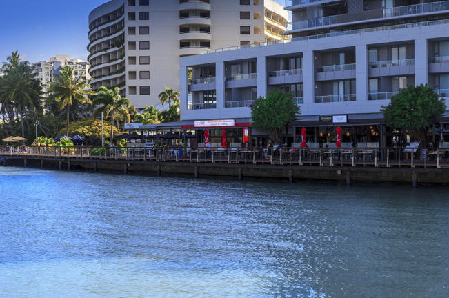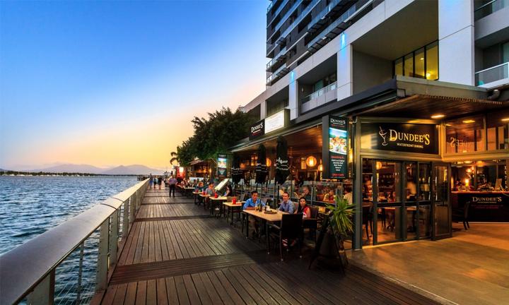 Dundee's Restaurant on the Waterfront is located beneath the Cairns Harbour Lights Hotel and adjacent to Cairns Esplanade in Australia. The restaurant serves one of the finest steaks from the grill, seafood, pasta and Australian specialist foods. While enjoying meals, diners can watch the reef boats go to and from the Great Barrier Reef.