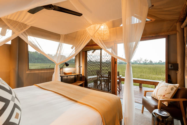 Little Sable has 6 twin/double rooms, all of which are tented and raised on wooden platforms to maximise the views across the grasslands. Each also has a ceiling fan and ensuite bathroom with indoor and outdoor showers, and a private veranda.