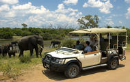 Explore the park’s diverse habitats in an open safari vehicle.
