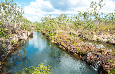 After lunch we enjoy a 4WD safari to appreciate the wonders of Garig Gunak Barlu National Park. First up is a visit to the stunning Nypa Palm gallery (Nypa Fruticans), one of only three locations in Australia where they can be found (the others are Melville Island and the Wenlock River). A short drive further brings us to the upper reaches of Trepang Creek, one of many creek systems that are a mix of spring-fed and tidally influenced systems that help provide nourishment to the rich marine life of the park.