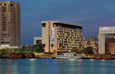 Lunch in het Aseelah restaurant van het Radisson Blue Deira Creek.