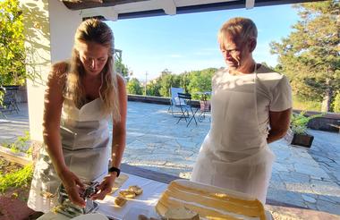 Lyst til å lære å lage pasta "fatto a mano" (håndlaget)? Da kan dere få være med på et meget sosialt og uformelt "kokkekurs" under pergolaen. Denne opplevelsen kan virkelig anbefales. Kveldens middag har dere derfor mekket selv ...