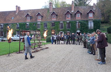 The day will end with a tableau in front of the chateau hosted by the games keeper. We'll enjoy some champagne and toast to the birds, loaders, beaters, and shooters!