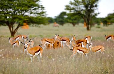 Fahrt durch die afrikanische Savanne in Richtung Norden, zunächst nach Okahandja, dem traditionellen Zentrum der Herero. Weiterfahrt nach Otjiwa, Pirschfahrt im offenen Geländewagen auf Namibias ältester Wildfarm. 1 Nacht in der Otjiwa Safari Lodge (3,5-Sterne). Ca. 260 km. (F, A)