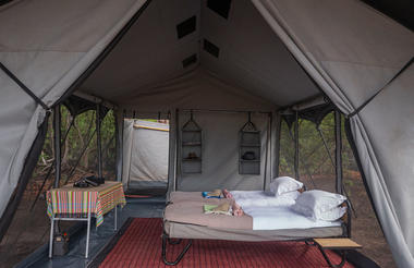Following breakfast and a possible morning activity (time permitting) you enjoy a helicopter transfer flight to Kweena Trail for your four night mobile camping safari ahead.