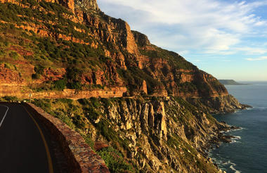 > Scenic drive along the Atlantic Seaboard, past Clifton and Camps Bay beaches, with the 12 Apostles rising above the blue Atlantic.