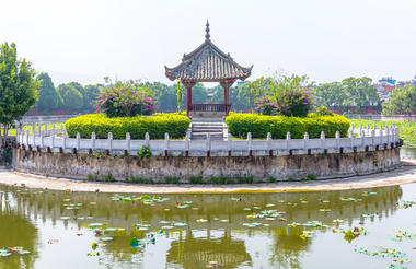 Al matí sortida cap a la població de Jianshui. Des d'aquesta antiga ciutat situada sobre la ruta de la Seda del Sud-oest de la Xina, més coneguda per l'antiga ruta del te i els cavalls, es controlava els passatgers que es dirigien cap al Vietnam, d'aquí que esdevingués el S.XIII a un centre polític i militar molt actiu. Avui aquesta petita ciutat és com un veritable museu d'arquitectura antiga. Arribada a Jianshui i trasllat a l'hotel. A la tarda visitarem el Temple de Confuci, segon més important del país amb un parc preciós on durant els mesos de juny, juliol i agost floreix el lotus. També la casa jardí de la Família Zhu que van ser governadors de Jianshui durant la dinastia Qing. Una casa espectacular magníficament conservada on cada racó convida a ser fotografiat.