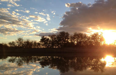Achter de camping is een waterplek aanwezig waar je 's avonds nog uren kunt genieten van de wilde dieren die hier hun dorst lessen.