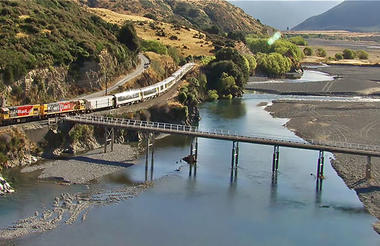 Diríjase a la estación de ferrocarril de Christchurch y parta en uno de los grandes viajes en tren del mundo, viajando de costa a costa a través de bosques y tierras de cultivo y sobre los espectaculares Alpes del Sur (8:15-13:05).