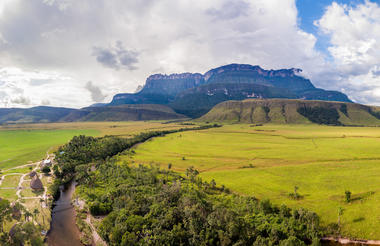 At dawn, the mighty tabletop mountain of Mount Roraima appears on the horizon. After breakfast, continue trekking through open savanna until you reach Base Camp (1,800 m), set dramatically at the foot of the tepui’s towering cliffs.