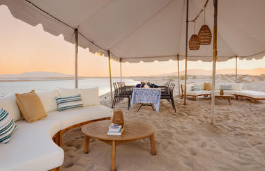 Our home for the next three night is the luxury tent camp, Camp Cecil de la Bahia. The camp is located on a sliver of land with the Bay and the gray whales on one side, and a protected estuary with mangroves, abundant birdlife, dolphins and more on the other. The tents of Camp Cecil de la Bahia are beautifully appointed walk-in safari-style tents with gorgeous beds, seating areas, rugs, chandeliers, and ensuite bathrooms. The camp chef prepares three beautiful meals a day and daily happy hour. It is a dreamy, wild and remote spot, completely ensconced in nature, enhanced by delights of great food and comfortable lodging.