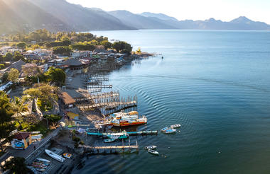 Route vers la région du Lac Atitlan. Traversée en bateau du lac et visite du village tz’utujil de San Juan la Laguna. Visite des associations de femmes tisserandes, des sages-femmes et guérisseuses du village.