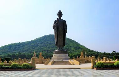 Ontbijt in het hotel. Vertrek per autocar naar Kanchanaburi. Bezoek aan een nieuw tempelcomplex, de Wat Sukhontharam. Hier vinden we de grootste staande bronzen Boeddha van Thailand. Rond de middag maken we een korte tocht op de rivier van Kwai Noi (nationaal park van Sai Yok) langs de beboste rots met kalkkliffen en tot bij de waterval van Sai Yok Yai. Lunch en rust op het vaartuig (groot vlot). In de namiddag bezoeken we de Hellfire Pass met het aanpalende museum. Vervolgens rijden we naar de stad waar we de beroemde brug over de Kwai rivier aanschouwen. Nadien inchecken in het hotel ‘Felix River Kwai’.