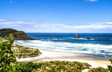 - Antes de llegar a Dunedin, abandona la carretera principal y toma la ruta pintoresca (Southern Scenic Route) hacia el mirador de Tunnel Beach. Un corto pero empinado paseo te llevará a una pequeña playa a través de una escalera excavada en la roca. ¡El panorama es espectacular!